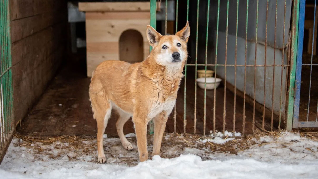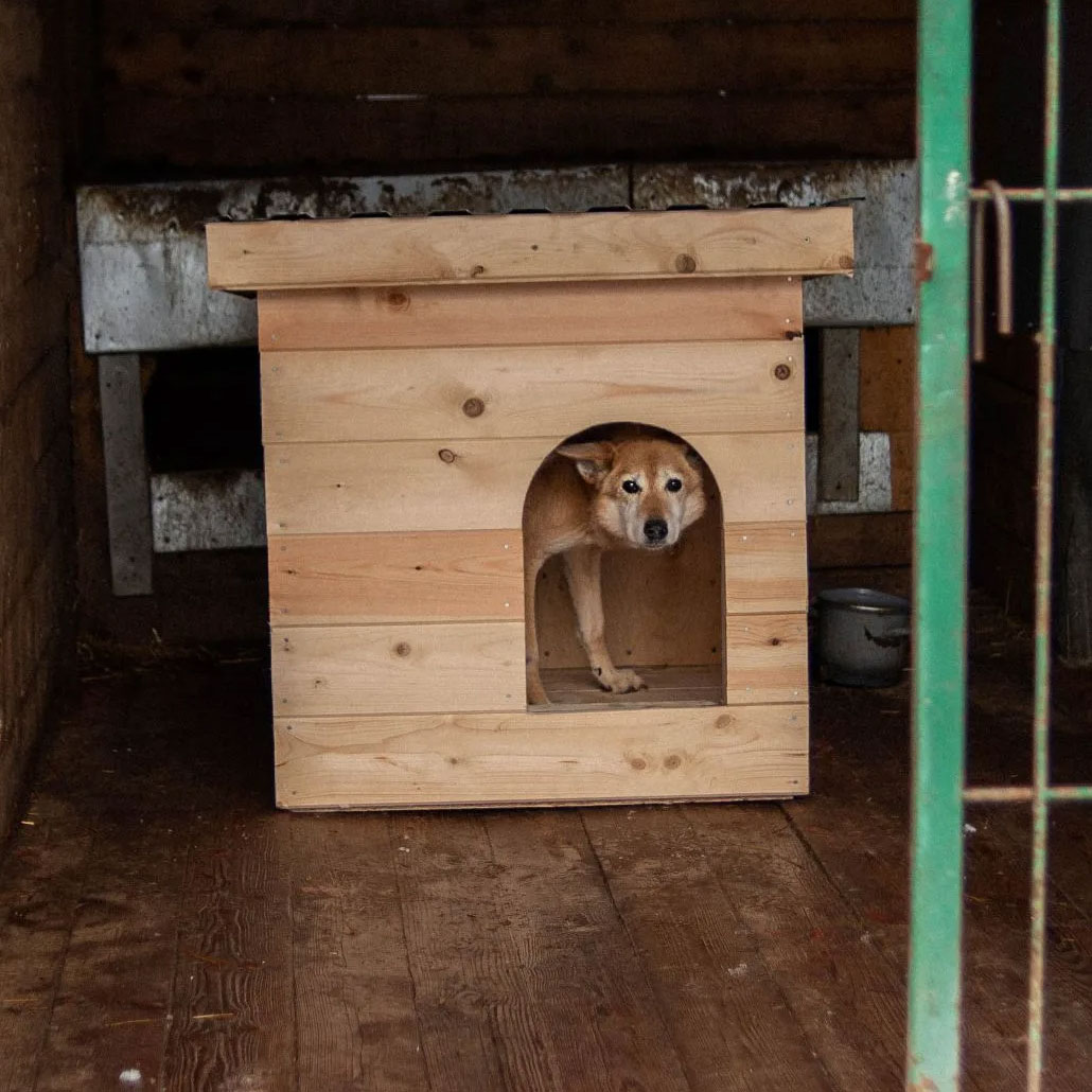 Малышка Лесси >> много лет живет в вольере приюта и мечтала получить на Новый год новый добротный домик.